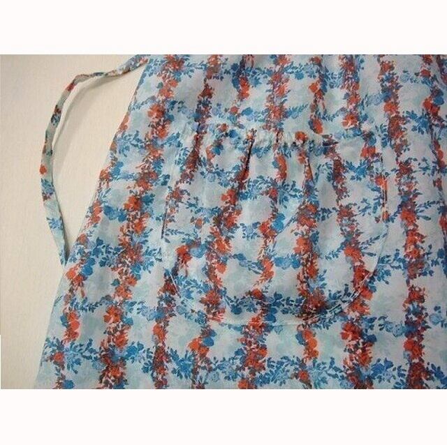 ブルーとオレンジの小花がチェックになった素敵なプリント。