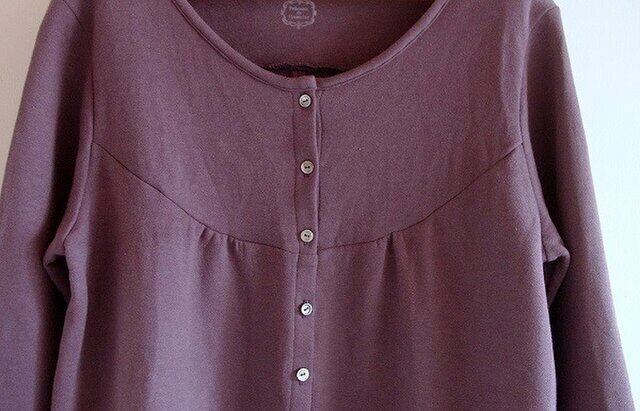 ヨーク切り替えと広めのネックラインが優しい雰囲気。