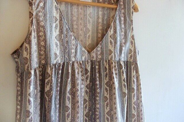 Vネック ギャザー チュニックワンピース ペイズリー