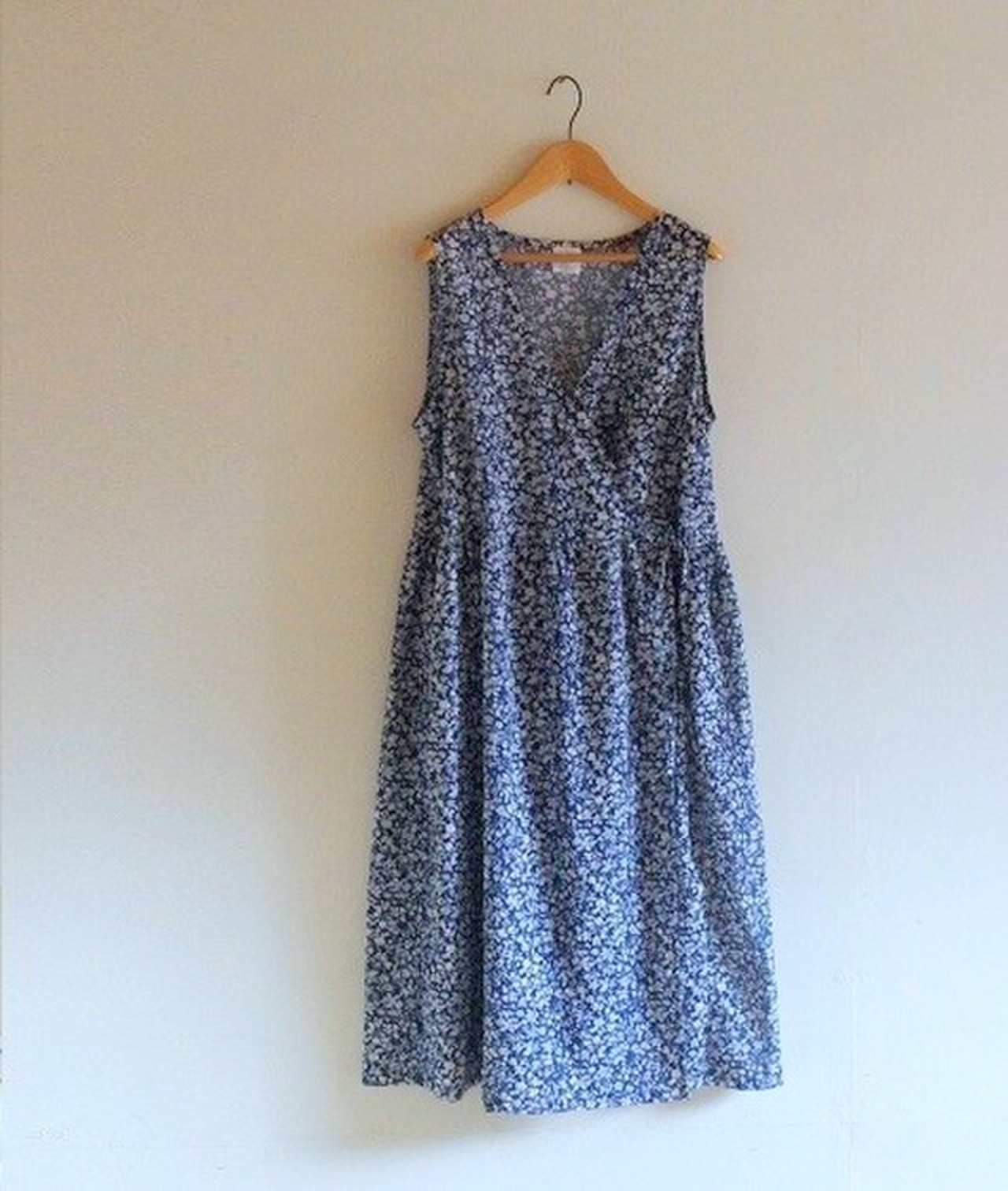 ナチュラルで落ち着いた花柄のカシュクールワンピース。